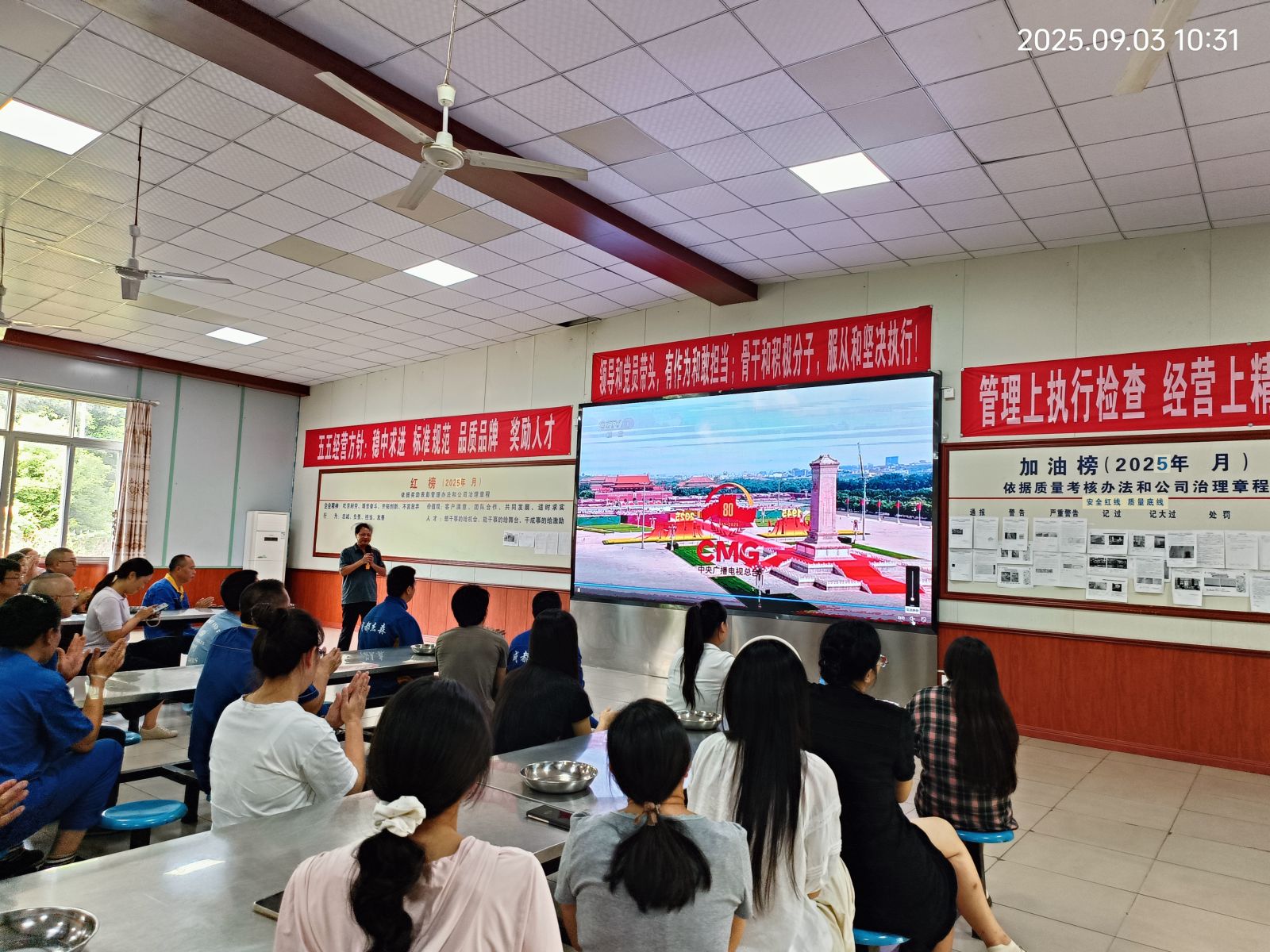 9月3日,为纪念中国人民抗日战争暨世界反法西斯战争胜利80周年,公司组织全体员工观看了在北京天安门广场举行的纪念大会直播。通过此次活动,公司员工进一步增强了爱国主义情感和民族自豪感,激发了为实现中华民族伟大复兴而努力奋斗的决心。大家纷纷表示,将铭记历史,缅怀先烈,珍惜和平,以更加饱满的热情投入到工作中,为公司的发展和国家的繁荣贡献自己的力量。